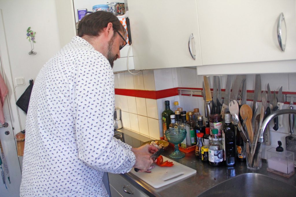 Anders Engström ska bjuda på hamburgare till lunch. Men hamburgaren har en intressant twist. Köttbiten är nämligen gjord på hälften nötkött och hälften mjölmask. Anders Engström ställer sig vid köksbänken och börjar skiva tomat och rödlök. Han berättar att han tycker det är förvånande när människor är ovilliga att prova äta insekter.