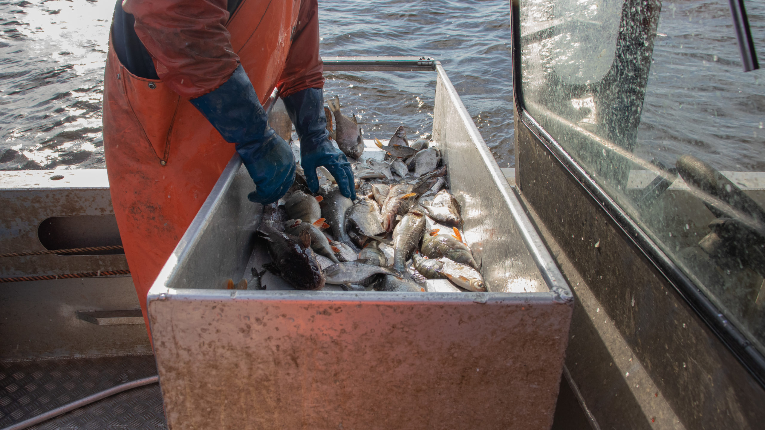 När Mats Eriksson sorterar morgonens fångst i båthuset läggs fisken i olika lådor baserat på art och vikt. Gösen packas tätt i gröna lådor med bålen vänd uppåt, likt en turist som betalat för sin solstolsplats på en strand i Italien. Hur gäddorna placeras är det inte lika noga med.