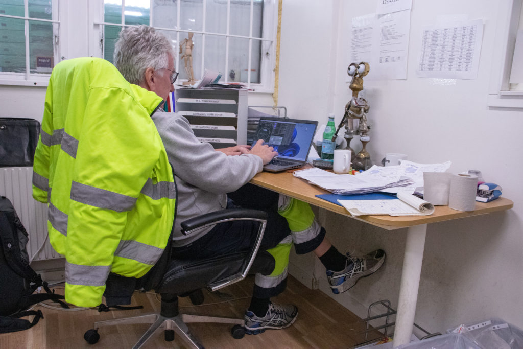pallarna som står tätt uppradade längs väggarna. Bernt-Ove Andrén och hans anställda har